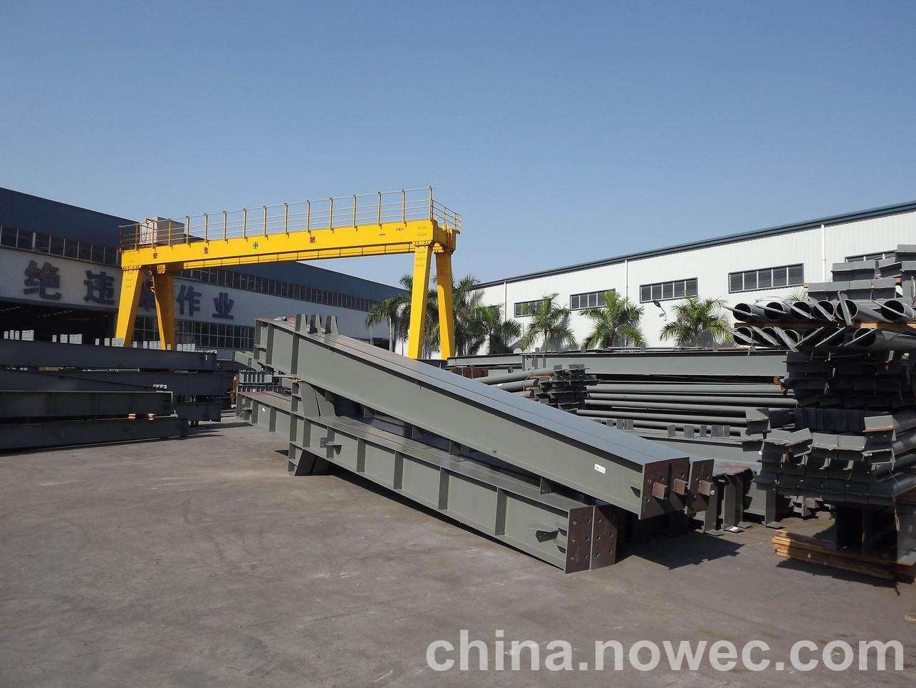 条状单元一般沿长跨方向分割,其宽度约为1~3个网格,其长度为l2或l2/2(l2为短跨跨距)。块状单元一般沿佛山网架平面纵横向分割成矩形或正方形单元。每个单元的重量以现有起重机能胜任为准。条(块)与条(块)之间可以直接拼装,也可空一网格在高空拼装。由于条(块)状单元是在地面拼装,因而高空作业量较高空散装法大为减少,拼装支架也减少很多,又能充分利用现有起重设备,故较经济。这种安装方法适用于分割后网架的钢度和受力状况改变较小的各类中小型网架,如两向正交正放四角锥、正放抽空四角锥等网架。